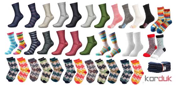 تقسیم بندی جوراب ها از نظر جنس شامل پنبه ای، نایلونی، پشمی، مخلوط آکرکلیک، پلی آمید و … است. همینطور از نطر اندازه نیز جوراب ها دارای اندازه های مختلفی شامل ساق کوتاه، سه ربع و ساق بلند هستند.